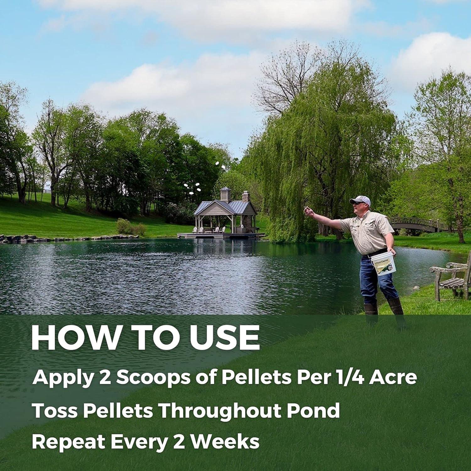A one acre pond that is five feet deep would require 2,600 pounds.